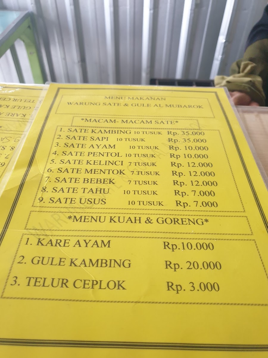 Warung Sate dan Gule Al - Mubarok Menu